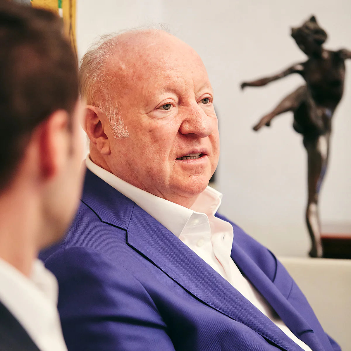 Juarez Machado fängt José Eisenbergs Muse ein mit einem Parfüm in der Hand fest, das Eleganz und Raffinesse symbolisiert.Sie strahlt selbstbewusste Sinnlichkeit aus, begleitet von einem Mann, der der Szene einen Hauch von Leidenschaft und Romantik verleiht. Seine Gesten der Bewunderung und Verführung unterstreichen den lässigen Charme der Frau. Violette Farbtöne und Silhouetten von Parisern auf Fahrrädern sind ein fröliches und modernes Augenzwinkern zu dem Glamour des verliebten Paares und verbinden die Kunst mit einem Lebensstil, der die Pariser Essenz verkörpert. Dieses Gemälde zelebriert den Duft sowie den Zauber und Raffinesse des Pariser Lebens.